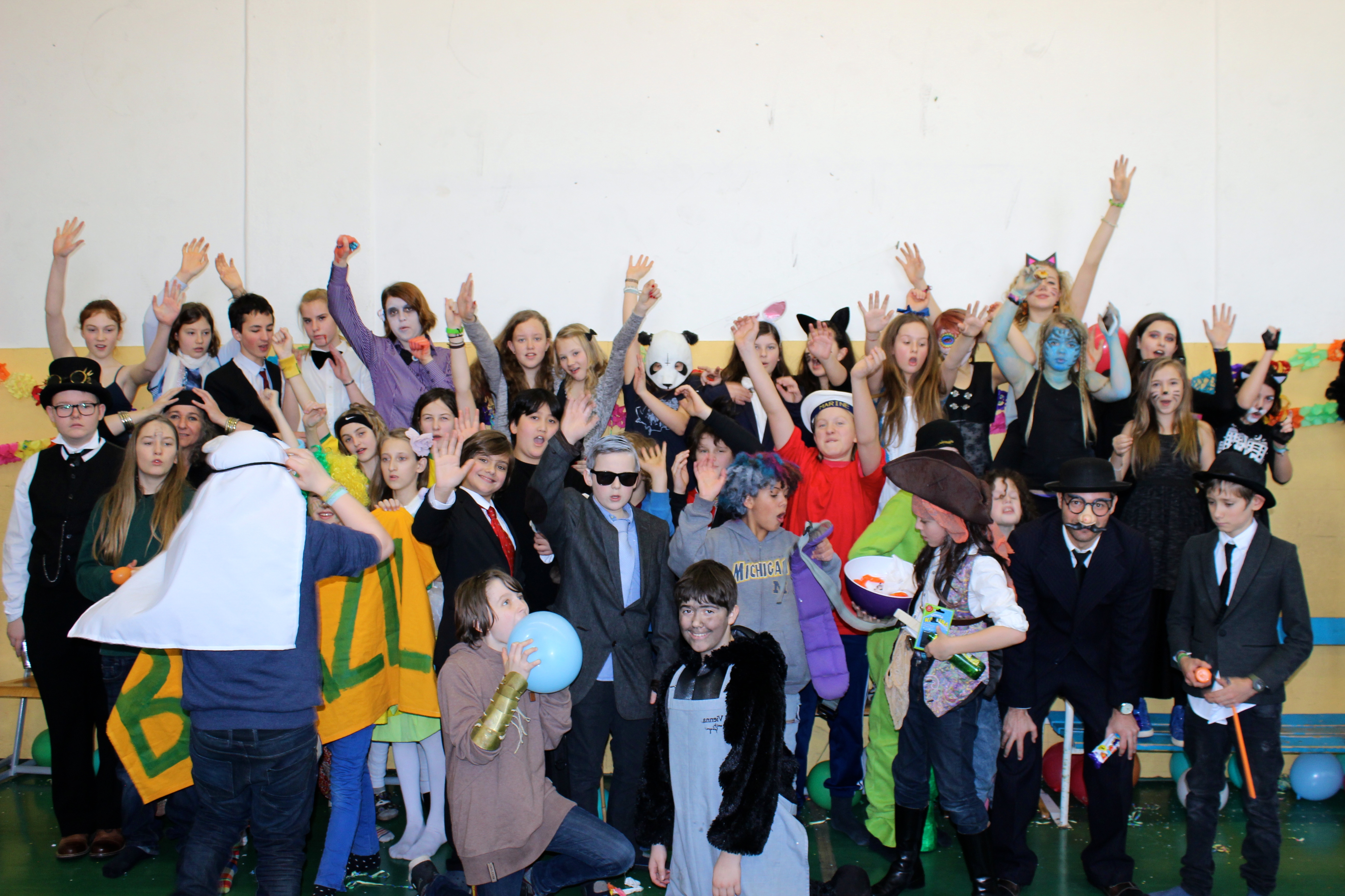 Am Rosenmontag feierten SchülerInnen und LehrerInnen Fasching. Mit dabei waren: James Bond, die Schlümpfe, ein Avatar, WahrsagerInnen usw. Bei einer Show wurden die besten Kostüme prämiert. Sieger: Pirat Immanuel!